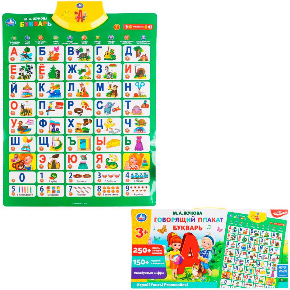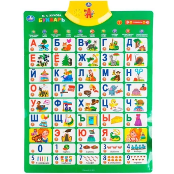 Яркий, красочный плакат будет отличным подарком. Плакат познакомит малышей с алфавитом, поможет разучить стихи и песенки. Он представляет собой наглядное пособие для детей. Яркое изделие содержит кнопки, нажав на которые можно услышать звуки, мелодии. Плакат наглядно демонстрирует материал. Развивает память и пространственное мышление ребенка, знакомит его с окружающим миром. Он поможет ярко, весело, а главное, наглядно показать информацию.