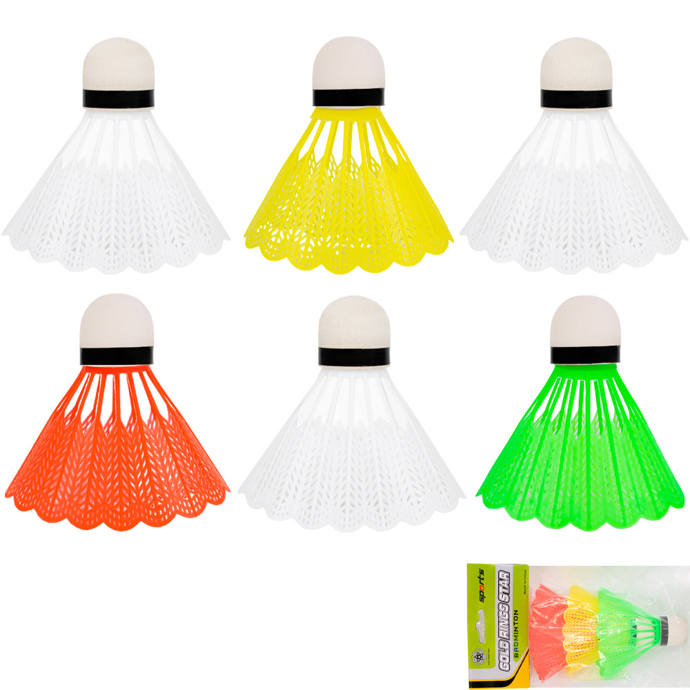 Набор ярких воланов для игры в бадминтон.