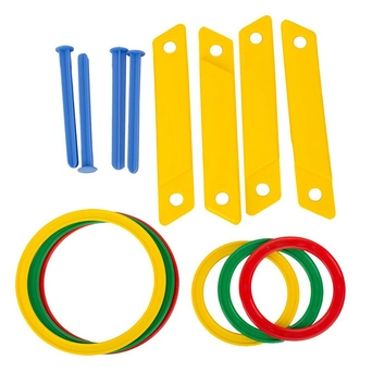 Дети любят подвижные игры и соревнования, ведь они не только веселые, но также развивают физическую выносливость, ловкость и быстроту реакции. Набрось кольцо У653 - это увлекательная игра для самых ловких, метких и находчивых. Отлично подойдет для помещения и улицы. Пластмассовые кегли закреплены на прочной подставке. Плоские круги удобны и достаточно широки для того, чтобы набросить их соответствующую цель смог даже маленький ребенок. Все элементы разноцветные, хорошо видны с дальнего расстояния. Рекомендуется предлагать играть на занятиях физкультуры, организации спортивных состязаний и конкурсов.