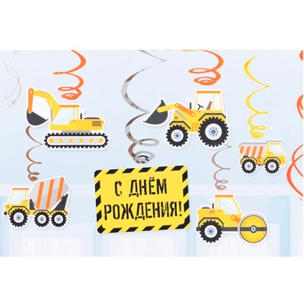 Декорация в виде фольгированных спиралей с подвешенными баннерами - декоративное украшение интерьера.