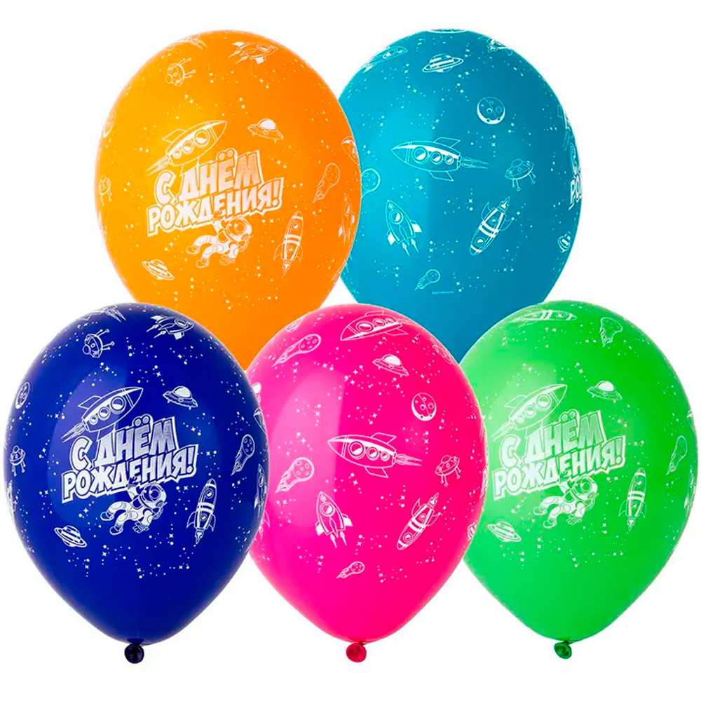 Яркие цветные латексные шары с рисунком дополняют друг друга, т. к. оформлены в одном стиле и тематике.