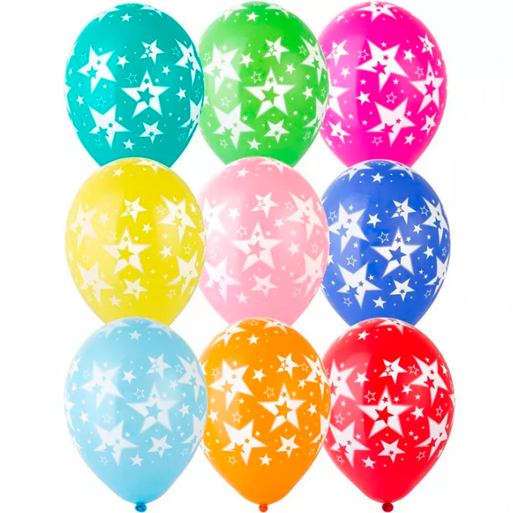 Яркие цветные латексные шары с рисунком дополняют друг друга, т. к. оформлены в одном стиле и тематике.