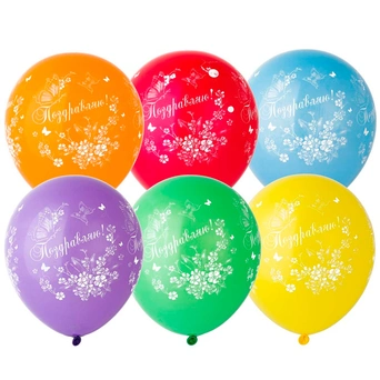 Яркие цветные латексные шары с рисунком дополняют друг друга, т.к. оформлены в одном стиле и тематике.