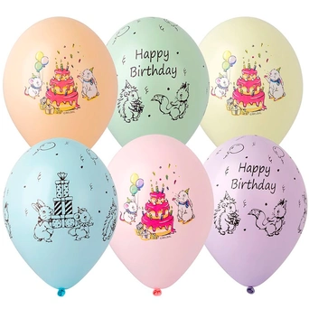 Яркие цветные латексные шары с рисунком дополняют друг друга, т. к. оформлены в одном стиле и тематике.