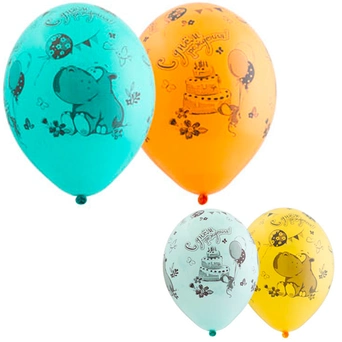 Яркие цветные латексные шары с рисунком дополняют друг друга, т.к. оформлены в одном стиле и тематике.