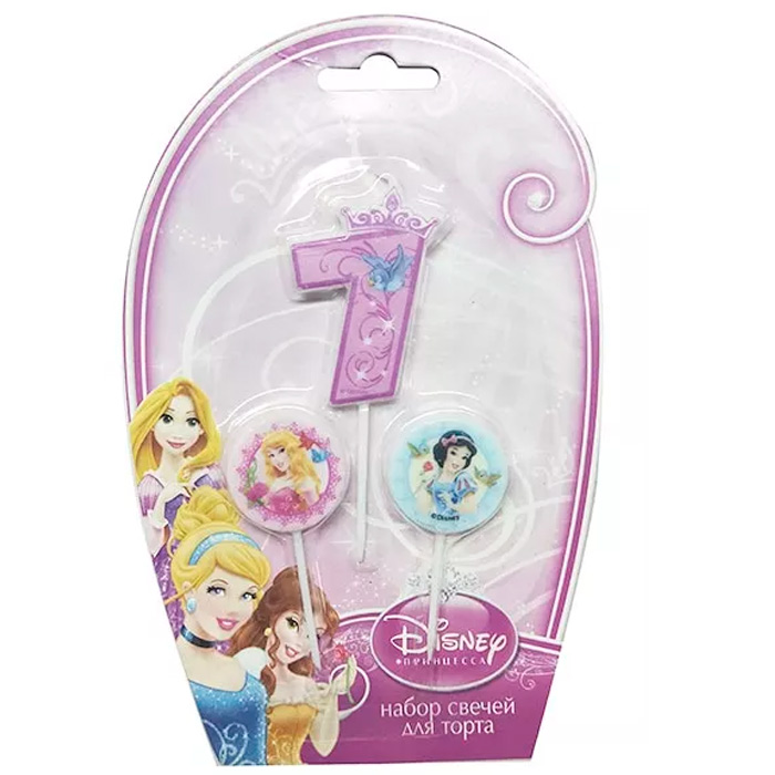 Свеча Дисней Принцессы цифра 7, медальоны 2шт 6029807