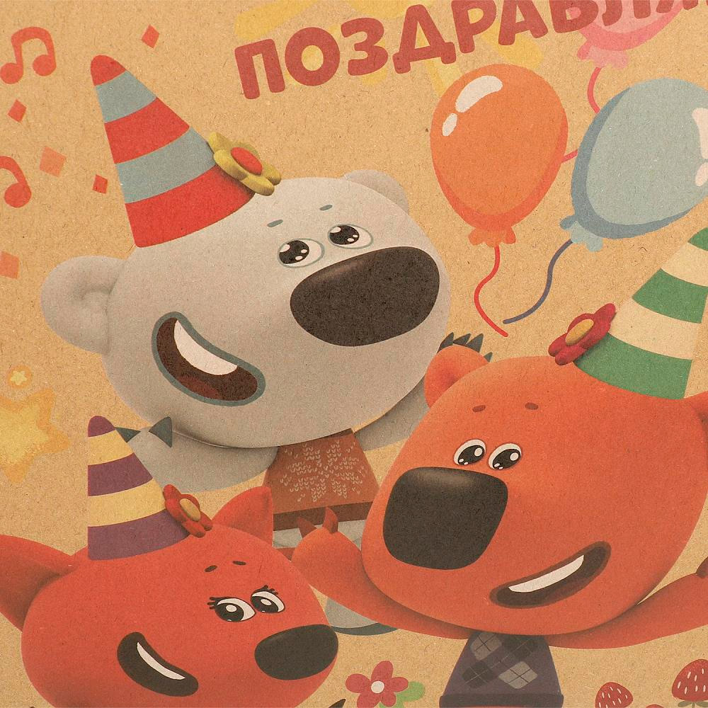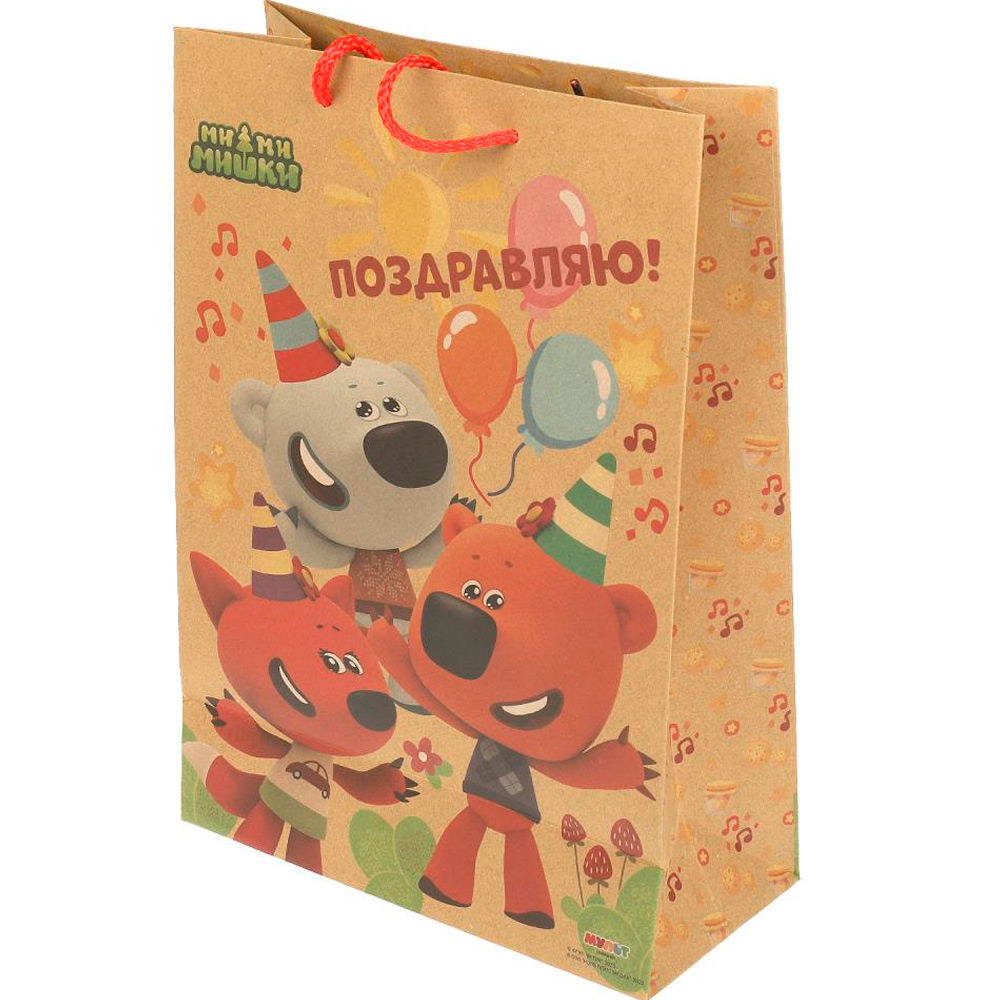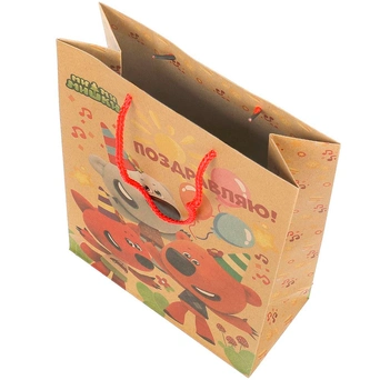 Плотный цветной пакет с ярким принтом позволит разместить подаки на любой случай.