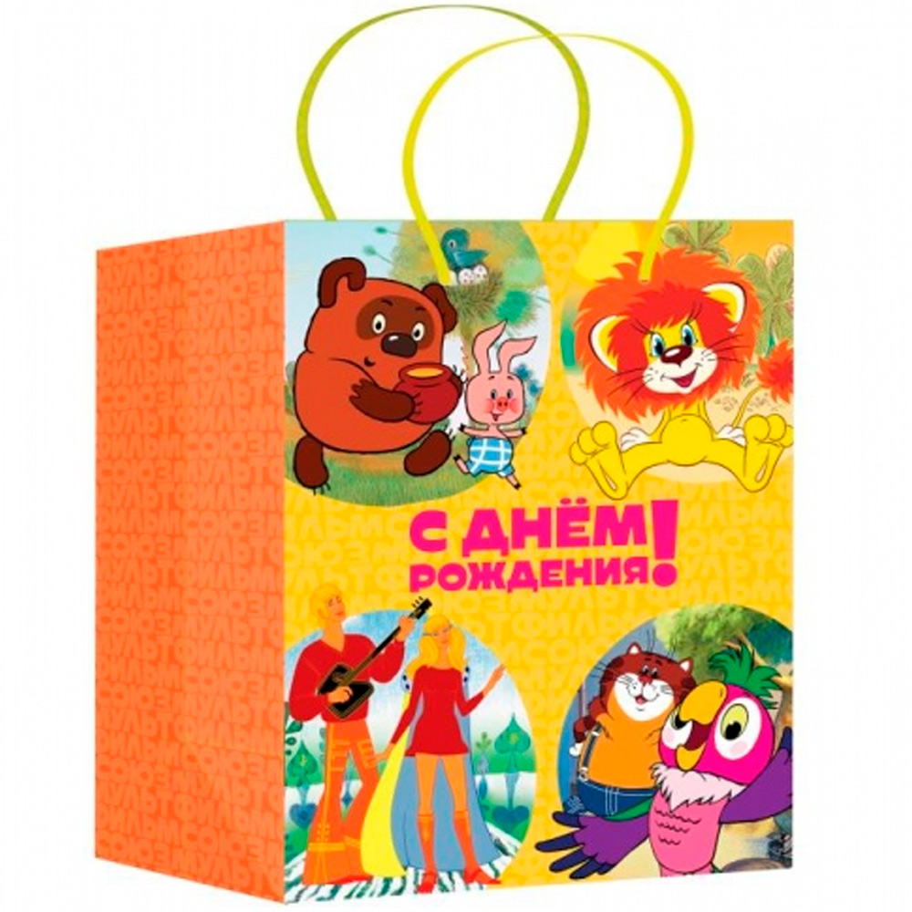 Оригинальный цветной пакет с красочным принтом позволит упаковать подарки на разные случаи.