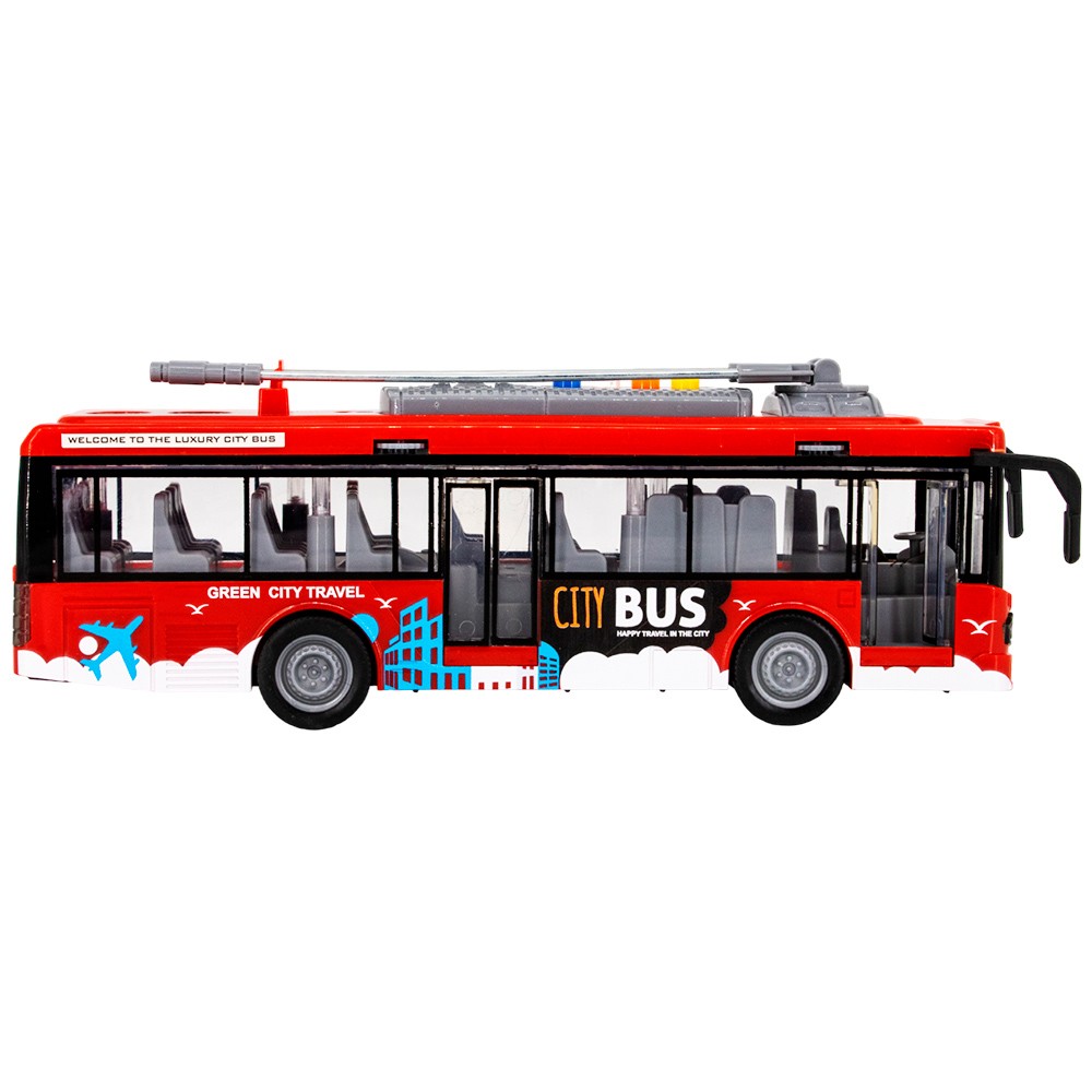 Троллейбус имеет хорошую детализацию, а открывающие дверки добавляют еще больше реалистичности. Внутри игрушки есть инерционный механизм, с помощью которого машинка катиться самостоятельно. Сделана игрушка из высококачественного, прочного пластика.