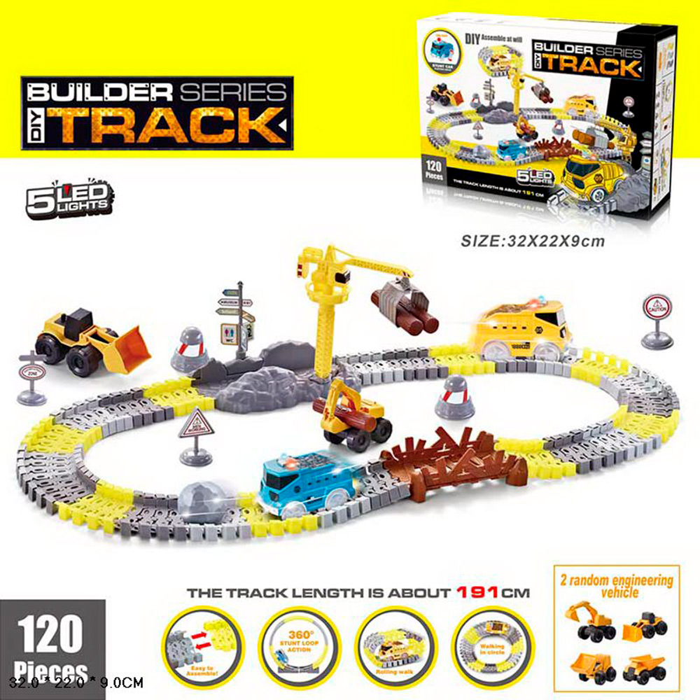 Трек собирается из деталей, которые позволяют собирать разные конфигурации дороги, даже петли.
