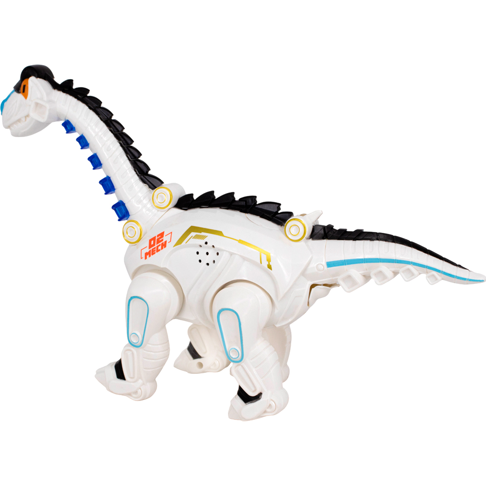 У динозавра подвижные лапы, ходит, рычит, мигают цветные огоньки.