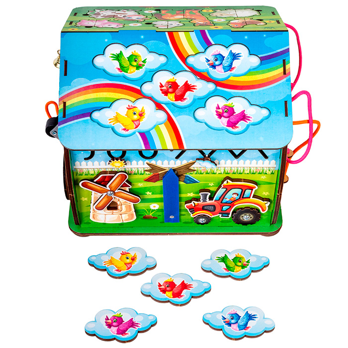Размер упаковки: 32*26,8*26,5 смФункционал: бизиборд для развития мелкой моторики