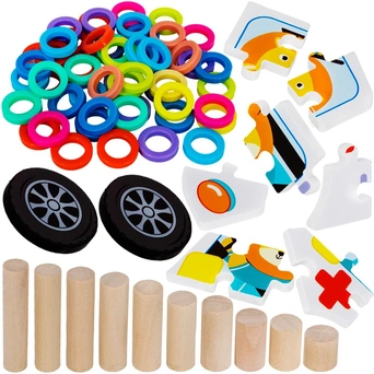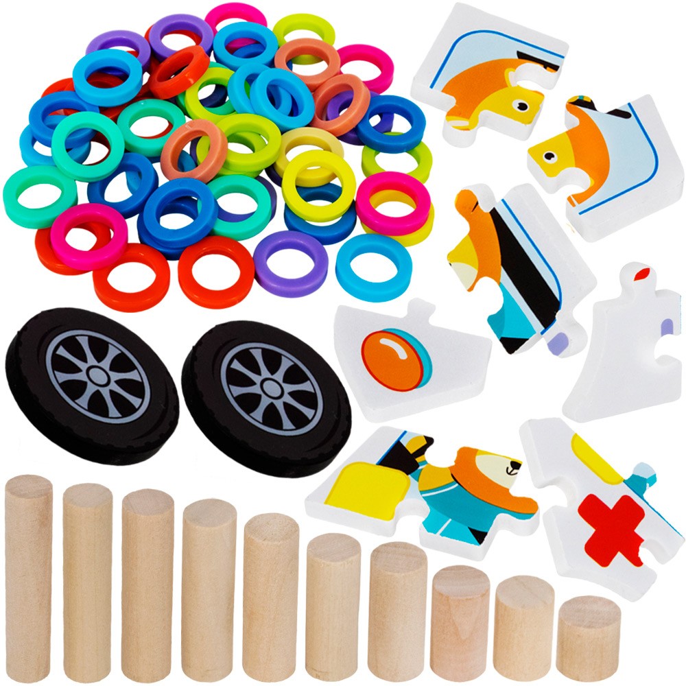 Комплектация: основа - 1 шт, деревянная палочка с магнитом - 1 шт, игровые элементы - 117 шт.