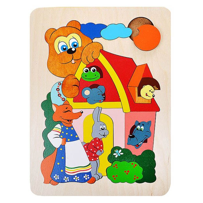 Пазл-вкладыш выполнен по мотивам известной детской «Теремок». Опираясь на изображение, расскажите ребенку эту замечательную сказку.
