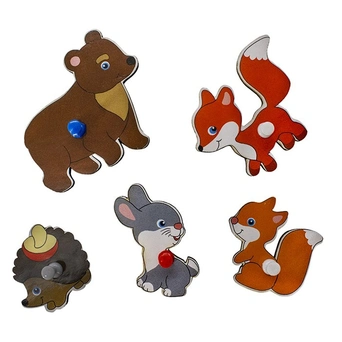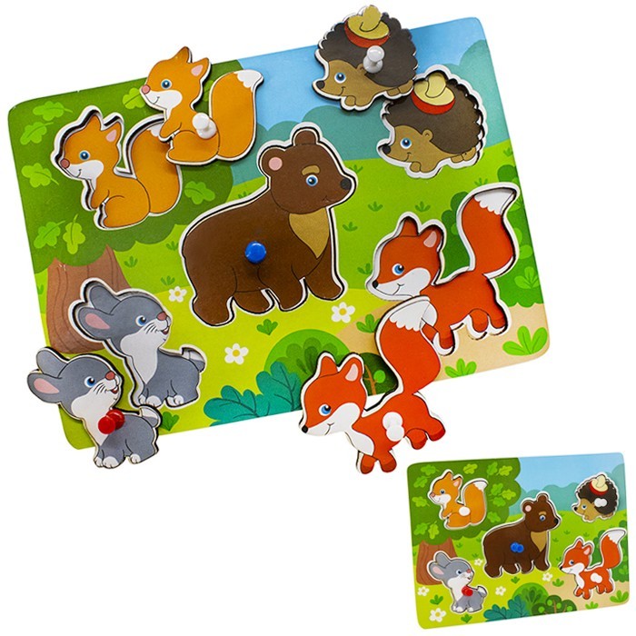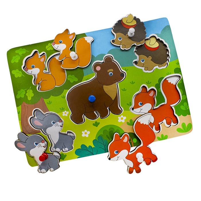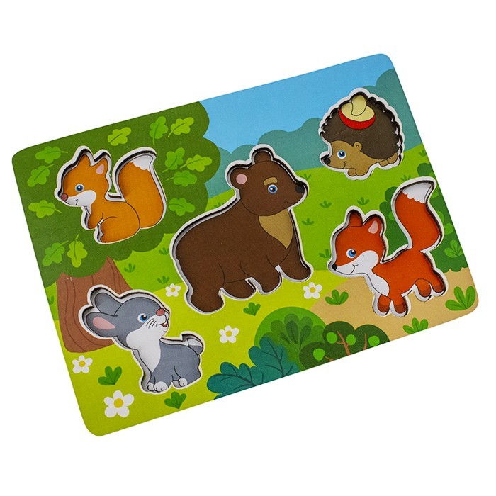 Комплектация: деревянная рамка-вкладыш, вставные фигурки в виде зверят