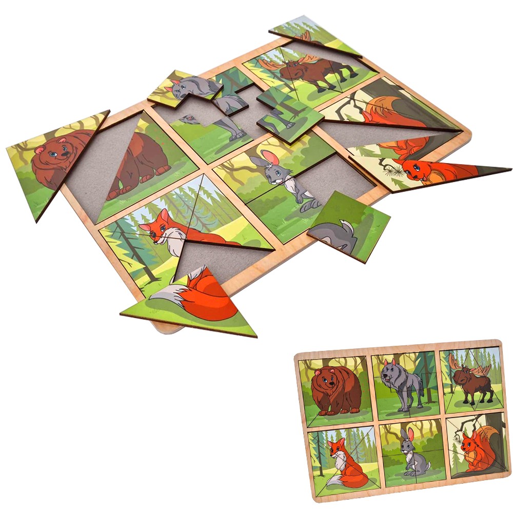 Карточки-пазл «Лесные животные» - это многофункциональная логическая игрушка, которая предназначена для детей дошкольного возраста. Малыши с энтузиазмом будут расставлять разноцветные геометрические фигурки, изучая животных и различные формы.
