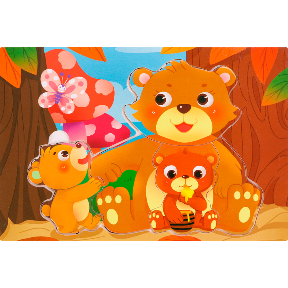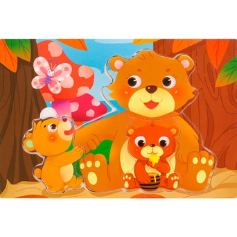Деревянная пазл-рамка «Семья медвежат» поможет малышам интересно и с пользой провести время.