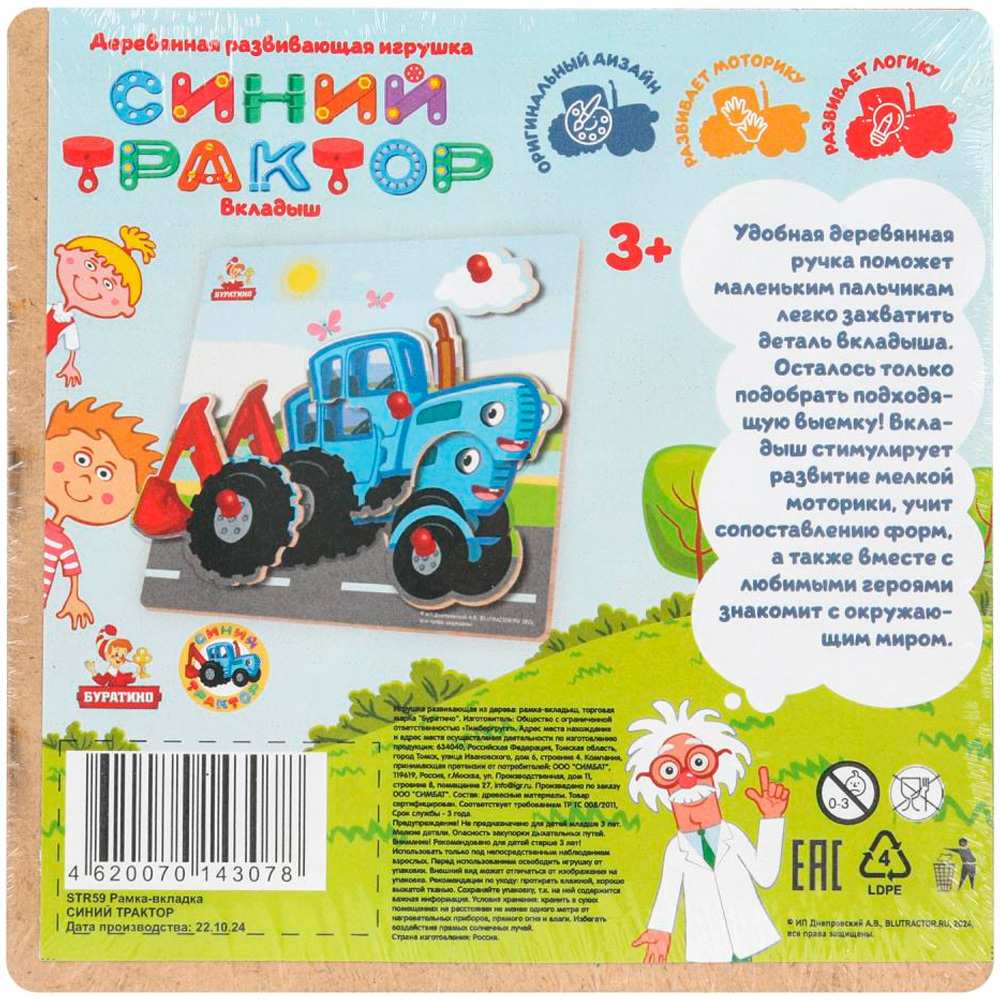 Деревянная игрушка-вкладыш «Синий Трактор» ТМ «Буратино» - отличная развивающая игра для маленьких поклонников одноимённого мультсериала.