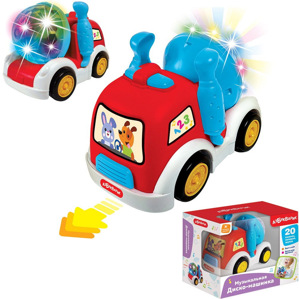 Диско-машинка от ТМ «Азбукварик» привидёт в восторг каждого ребёнка. Она весело мигает разноцветными огоньками под музыку. С помощью такой машинкой малыши могут устроить домашнюю дискотеку!