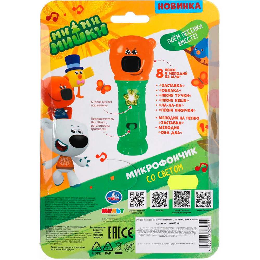 • Оригинальный яркий микрофон предназначен для активных игр и развития мелкой моторики и координации движений.
