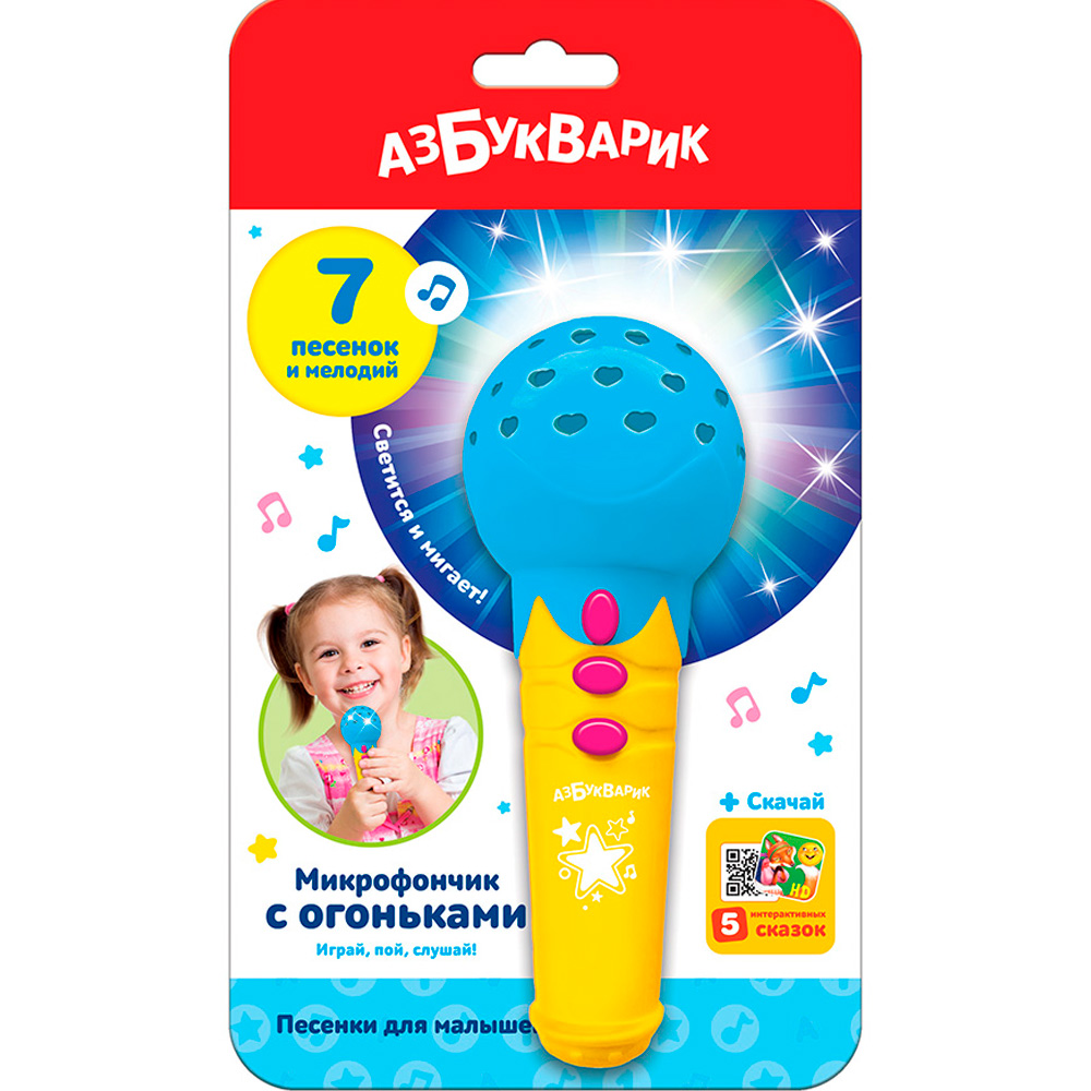 Микрофончик Песенки для малышей с огоньками голубой 4680019284804
