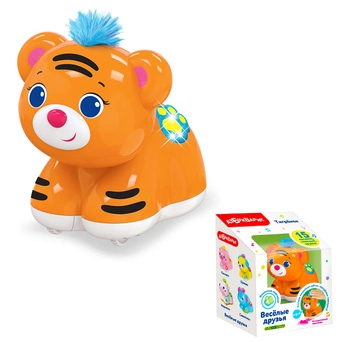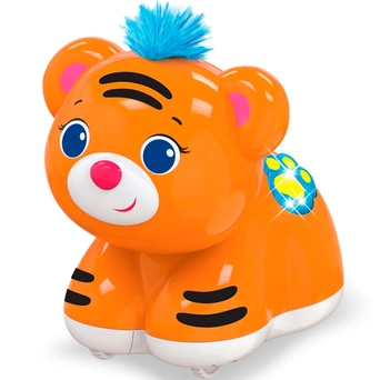 Милый тигренок с пушистым чубчиком приведет малыша в восторг. А чубчик у него – волшебный! Нужно просто его погладить – и тигренок заговорит! Нажимая на кнопочку, малыш послушает веселые песенки и мелодии («Озорной тигрёнок», «Приходи в зоопарк поскорей», «Чунга-чанга», «Арам зам зам», «Прятки»). А если погладить чубчик во время звучания – тигренок будет подпевать. В игрушке также есть инерционный механизм – зверюшка ездит не хуже машинки.