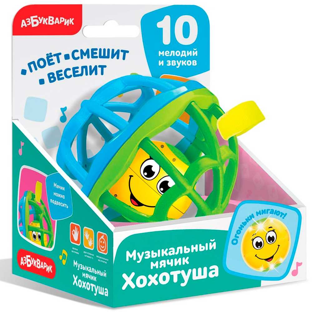 Веселый музыкальный мяч «Хохотуша» от ТМ «Азбукварик» развеселит малышей и вызовет множество радости и смеха!