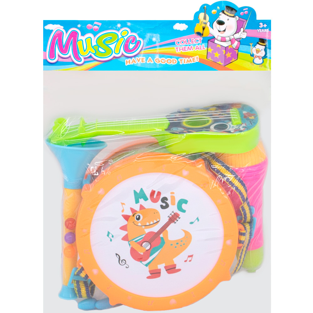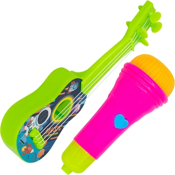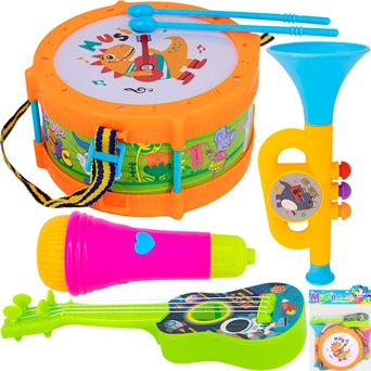 Комплектация: барабан, 2 палочки, труба, гитара, микрофон