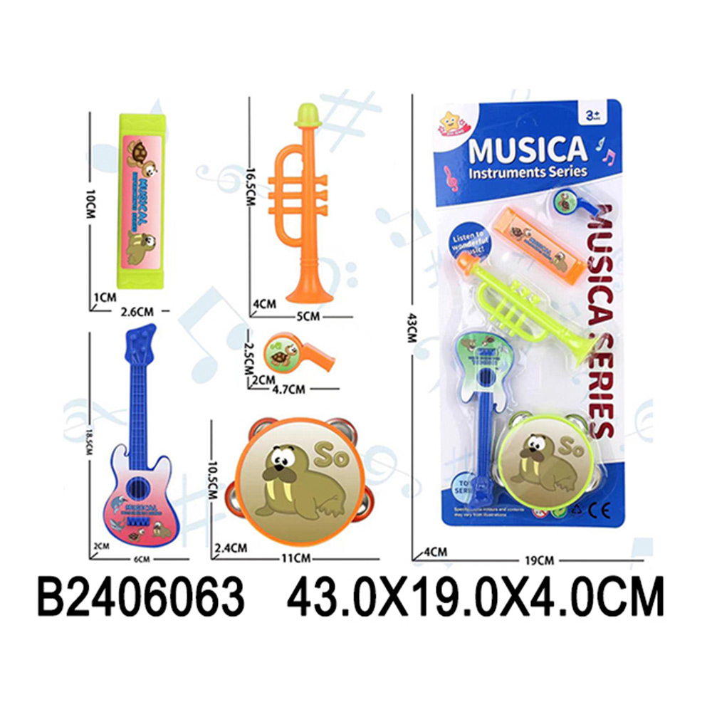 Комплектация: бубен - 1 шт., губная гармошка - 1 шт., дудочка - 1 шт., гитара - 1 шт.