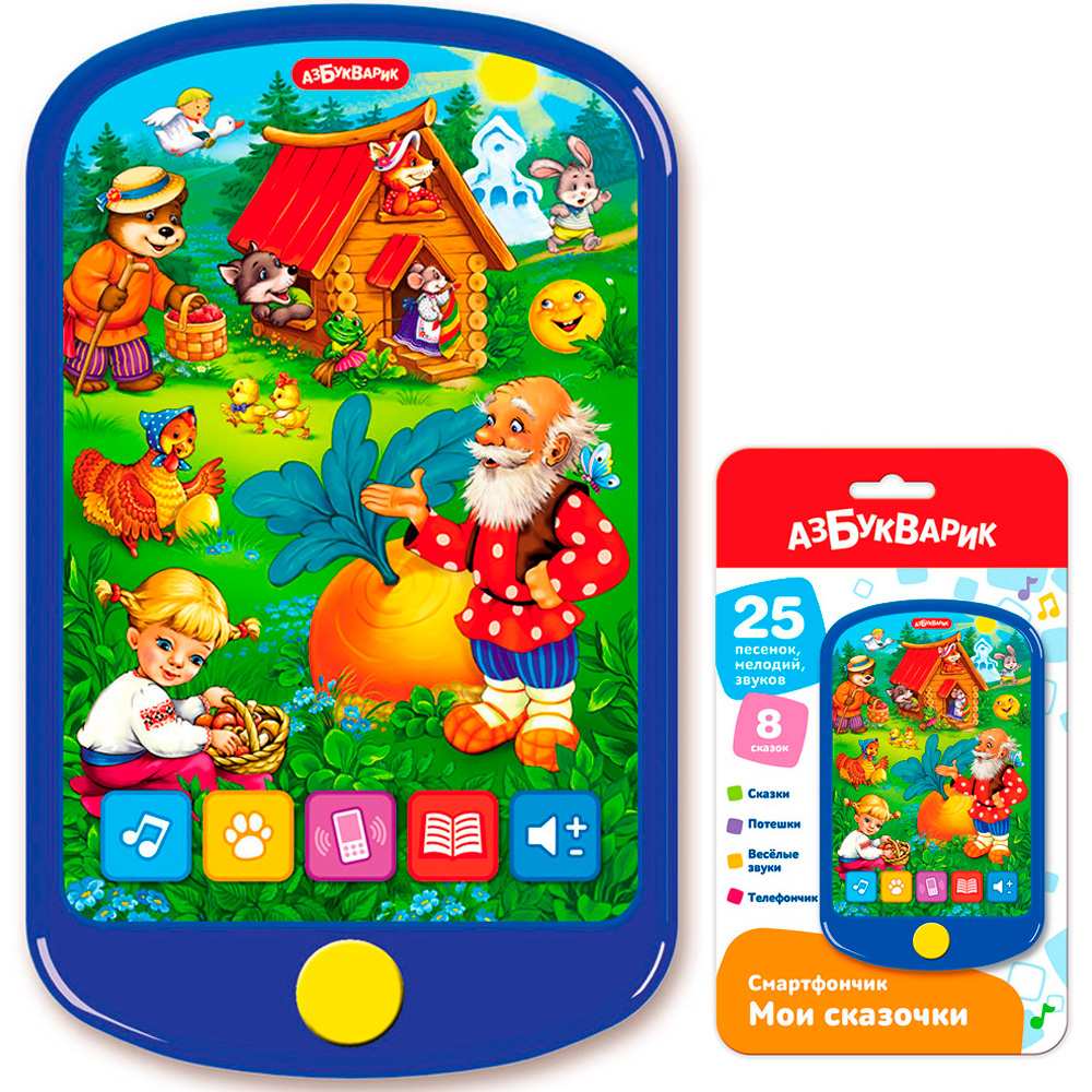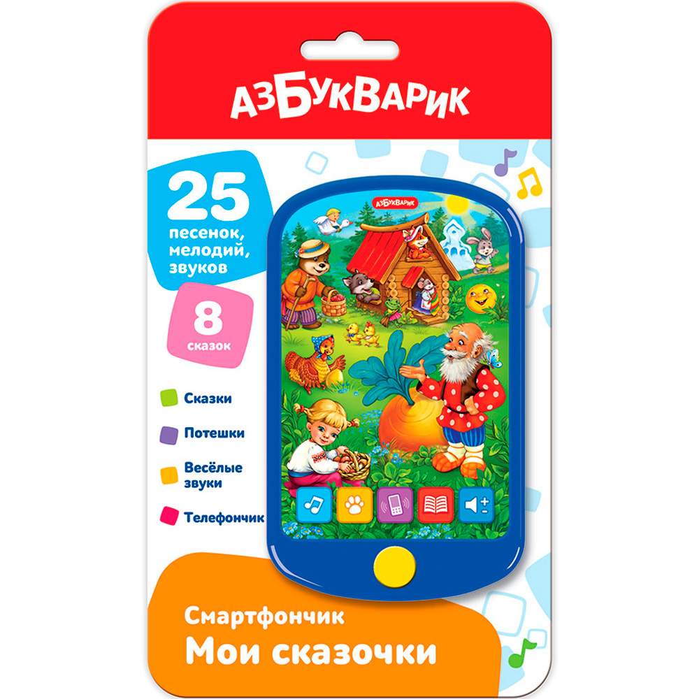 Функционал: музыкальная игрушка, звуковые эффекты - 25 песенок, мелодий и звуков, 8 сказок