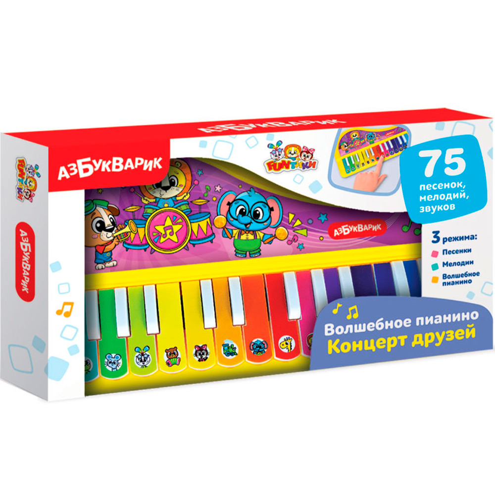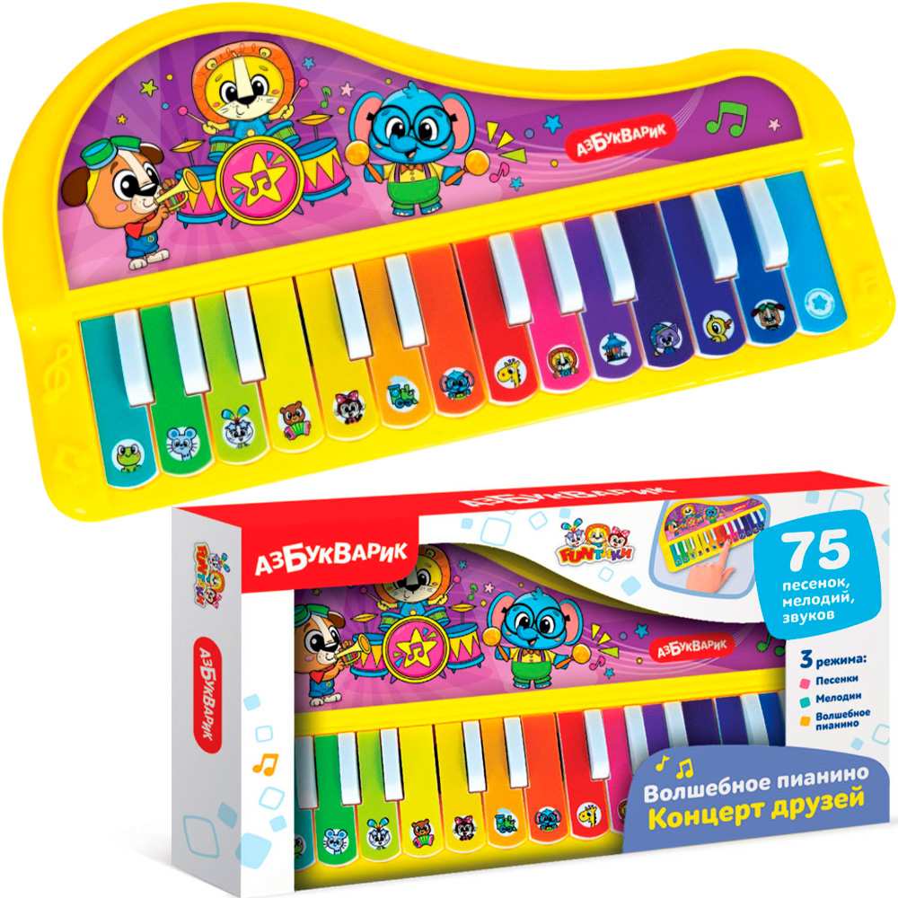 Волшебное пианино «Концерт друзей» с ярким привлекательным дизайном создано специально для маленьких детских ручек.