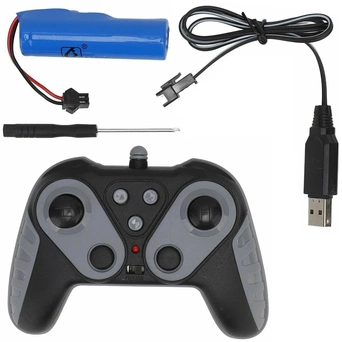 Комплектация: машина, пульт, шнур для зарядки, аккумулятор, отвертка