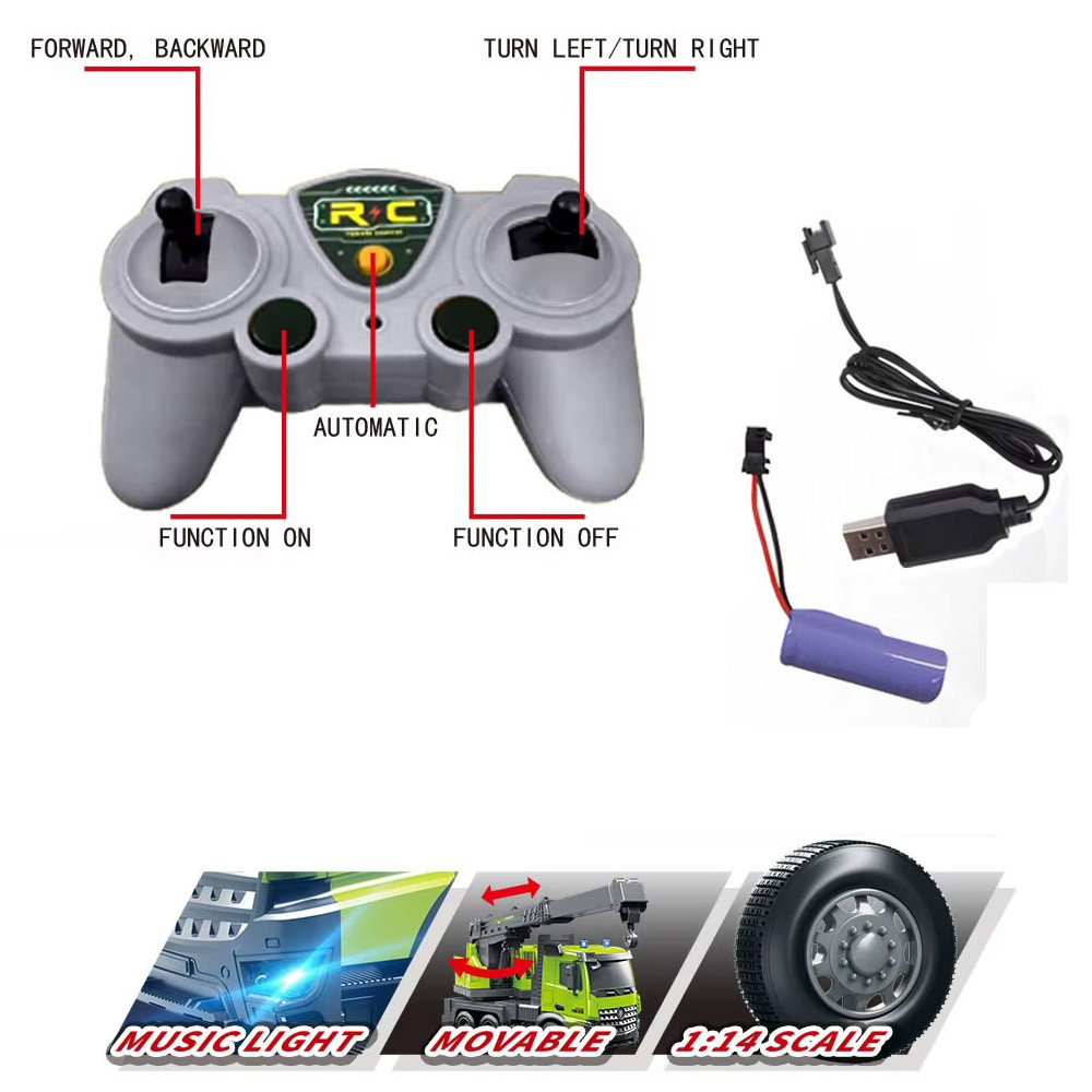 Комплектация: машинка - 1 шт, пульт управления - 1 шт, аккумулятор - 1 шт, USB кабель - 1 шт
