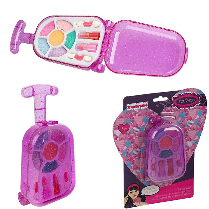 Набор косметики для создания красивого макияжа понравится каждой маленькой моднице. С таким набором можно играть в визажиста и устроить дома настоящий салон красоты. В серию детской косметики входят помады, лаки для ногтей, блески для губ, тени для век, румяна. Такие наборы позволят девочке выработать свой индивидуальный стиль, почувствовать себя взрослой, приобщиться к миру макияжа и проявить творческие способности. Косметика гипоаллергенна и безопасна для детей, легко смывается водой и не оставляет раздражений. Порадуйте свою маленькую модницу таким набором.