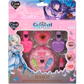 Комплектация: косметичка-футляр, тени для век, блеск для губ, помада, аппликатор, лак для ногтей.