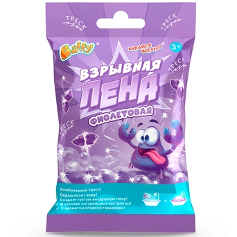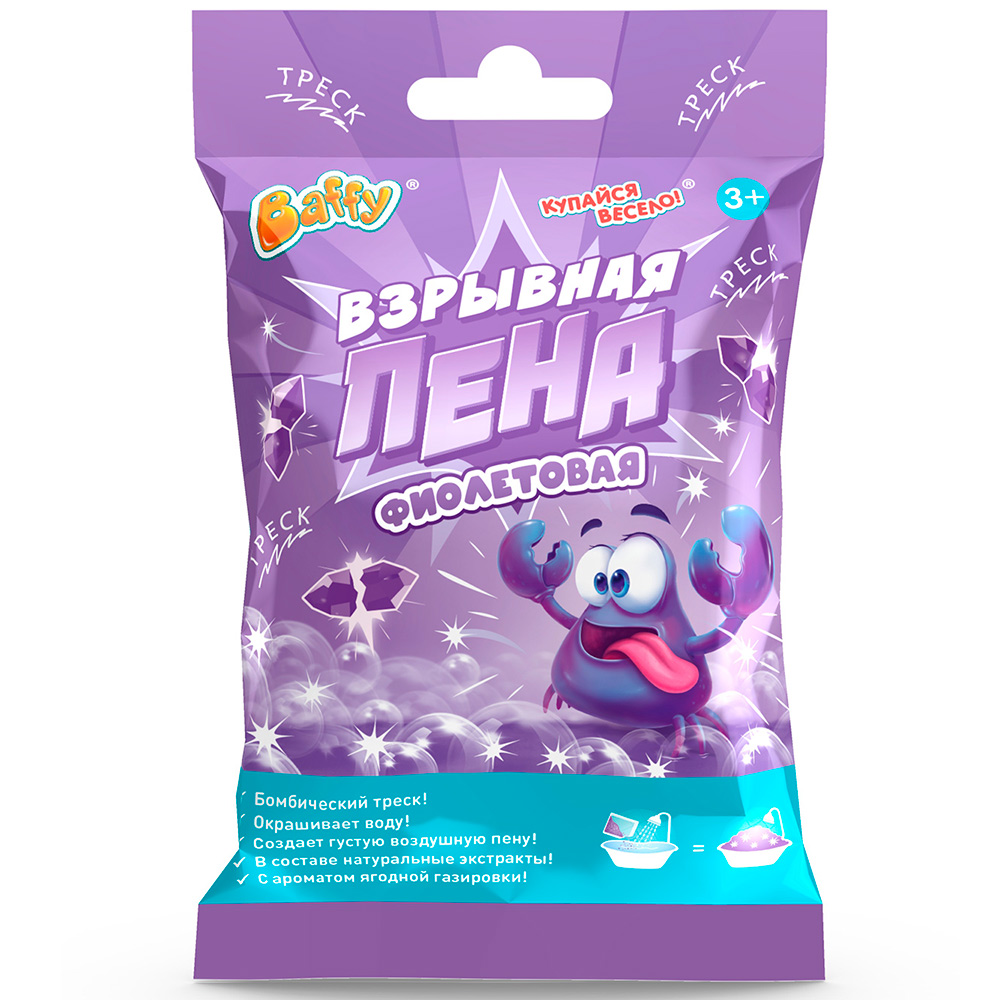 Растворяясь в воде, пена звонко трещит, словно мини-фейерверк, раскрашивая воду в яркие цвета! А потом образуется целая гора пенных пузырей.