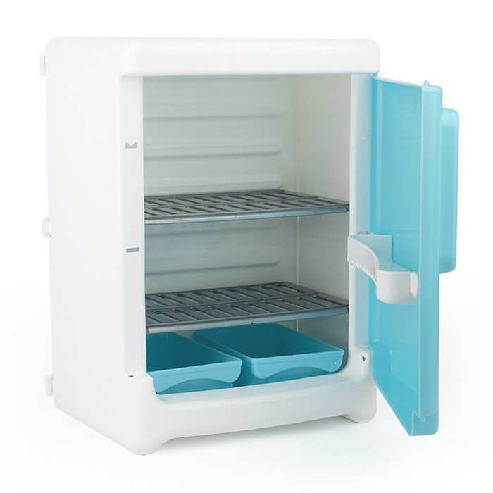 Многие девочки любят играть с куклами и обустраивать им жилье. Этот пластиковый холодильник от торговой марки Совтехстром прекрасно подойдет для сюжетно-ролевых игр. Он оборудован двумя полками, на которых маленькая хозяюшка сможет разместить пластиковые продукты, а внизу есть два выдвижных ящика. Дверь холодильника открывается.