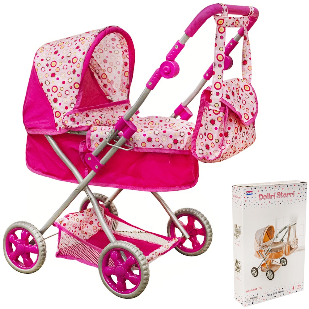 У коляски есть складной капюшон, который защищает игрушку от ветра и дождя. Ее можно использовать как дома, так и на улице. Прочный каркас обеспечивает надежность. Чехол легко снимается и стирается. Коляска компактная и легкая.