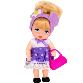 Комплектация: пупс (12 см) – 1 шт., сумочка (3 х 3,5 см) – 1 шт., гребешок для волос (3 х 5,5 см) – 1 шт.