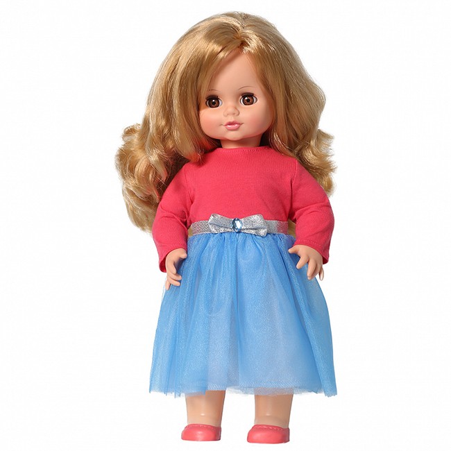 Инна яркий стиль 1 - милая кукла с открытым, добрым личиком, выразительными глазками и пухлыми щечками. С ней девочка сможет придумывать великое множество игр, развивающих фантазию, сюжетно-образное мышление, а также чувство ответственности и заботы. Одета кукла отрезное платье с длинным рукавом, верх из трикотажа, пышная юбка из органзы, по линии талии отделка лентой с бантом, на ножках - туфельки-балетки. У Инны длинные волосы из качественного прошитого нейлона, очень похожие на настоящие, их можно причесывать, завивать и укладывать, меняя образ красавицы. Ручки и голова игрушки выполнены из качественного винила, тело и ножки - пластиковые, глаза - вставные закрывающиеся. Благодаря тому, что руки и ноги куклы подвижны, ее можно садить, ставить и укладывать спать, что разнообразит игровые сюжеты. Инна кэжуал 1 озвучена, при нажатии на звук