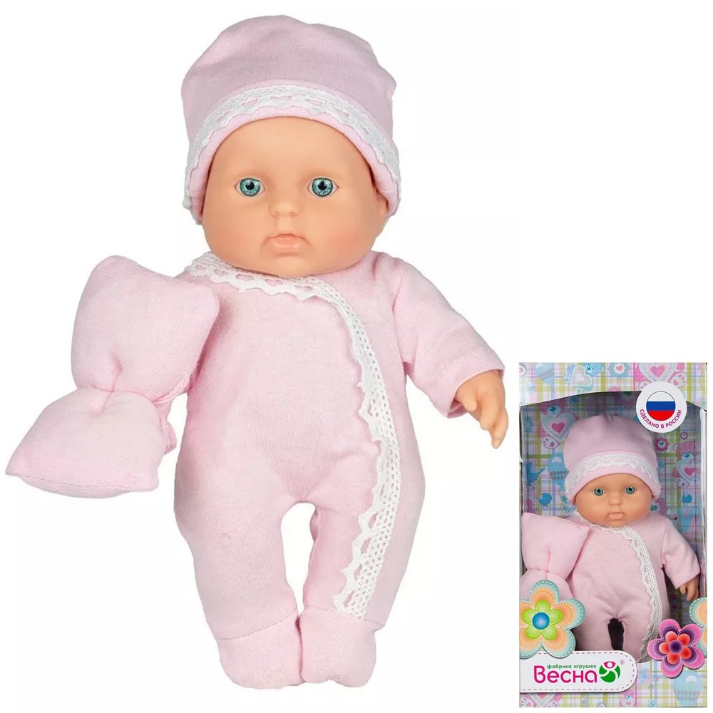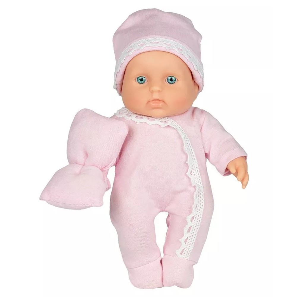 - Комплектация: пупс, комбинезон, шапка, подушка