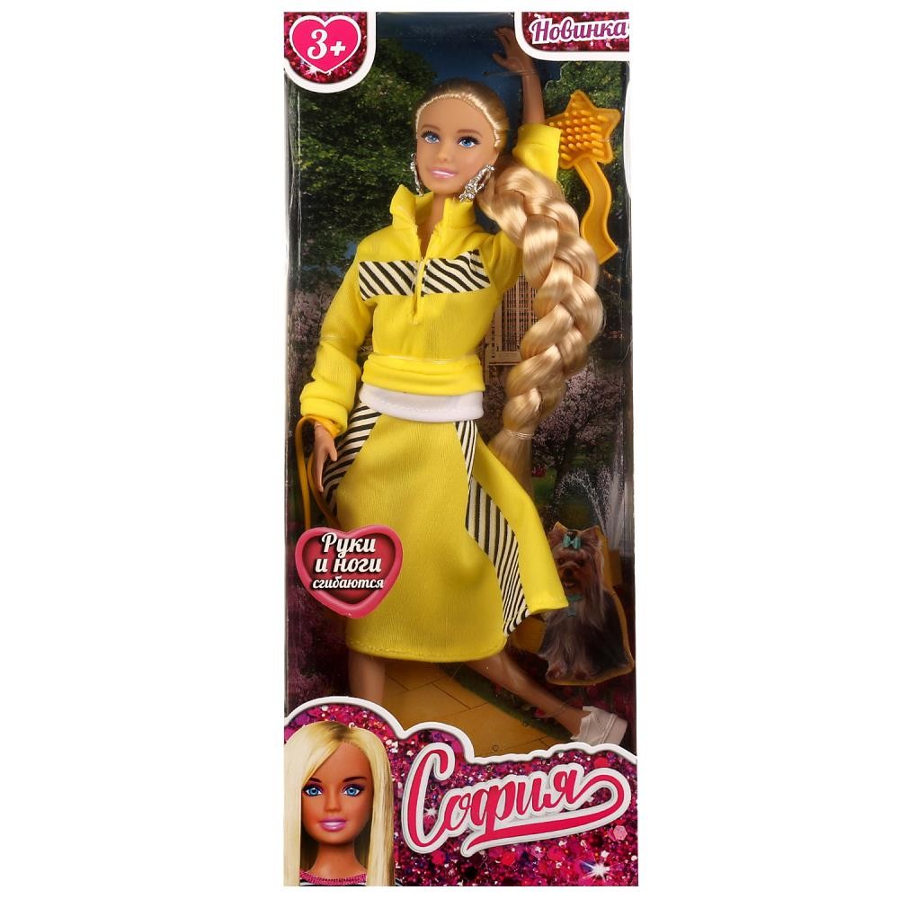 Комплектация: кукла - 1 шт., бижутерия, костюм - 1 шт., туфли - 1 пара, сумочка - 1 шт., расческа - 1 шт., питомец - 1 шт.