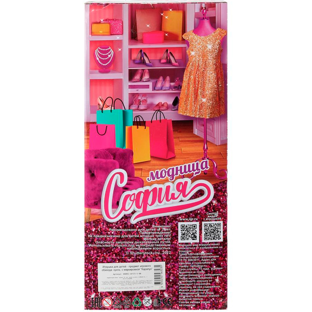 Комплектация: кукла - 1 шт., комплект одежды - 1 шт., обувь - 1 пара, аксессуары