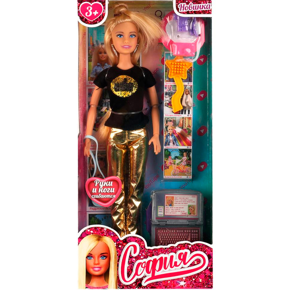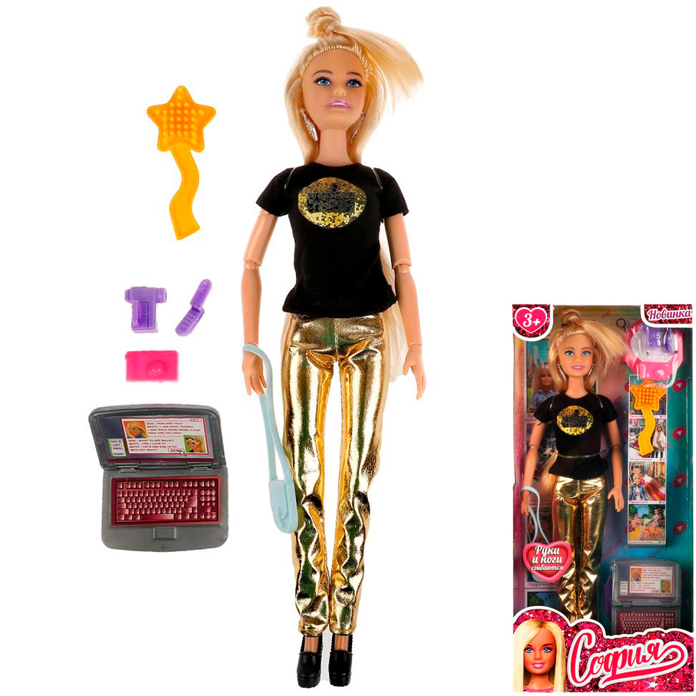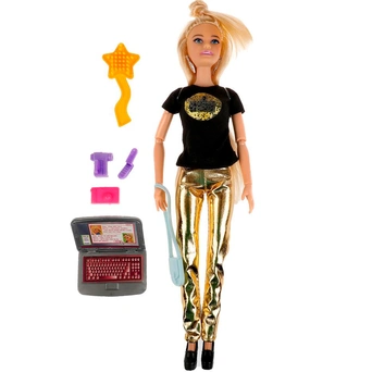 Комплектация: кукла - 1 шт, расческа - 1 шт, сумочка - 1 шт, ноутбук - 1 шт, фотоаппарат - 1 шт. телефон - 1 шт, камера - 1 шт