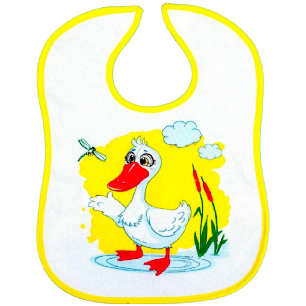 Яркий слюнявчик предназначен для защиты одежды малыша во время приема пищи.