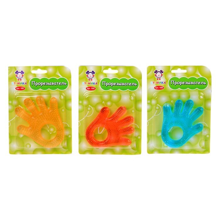 Комплектация: прорезыватель - 1 шт.Материал: силикон, вода