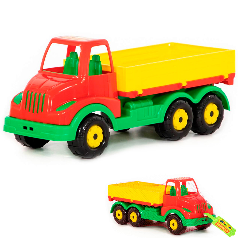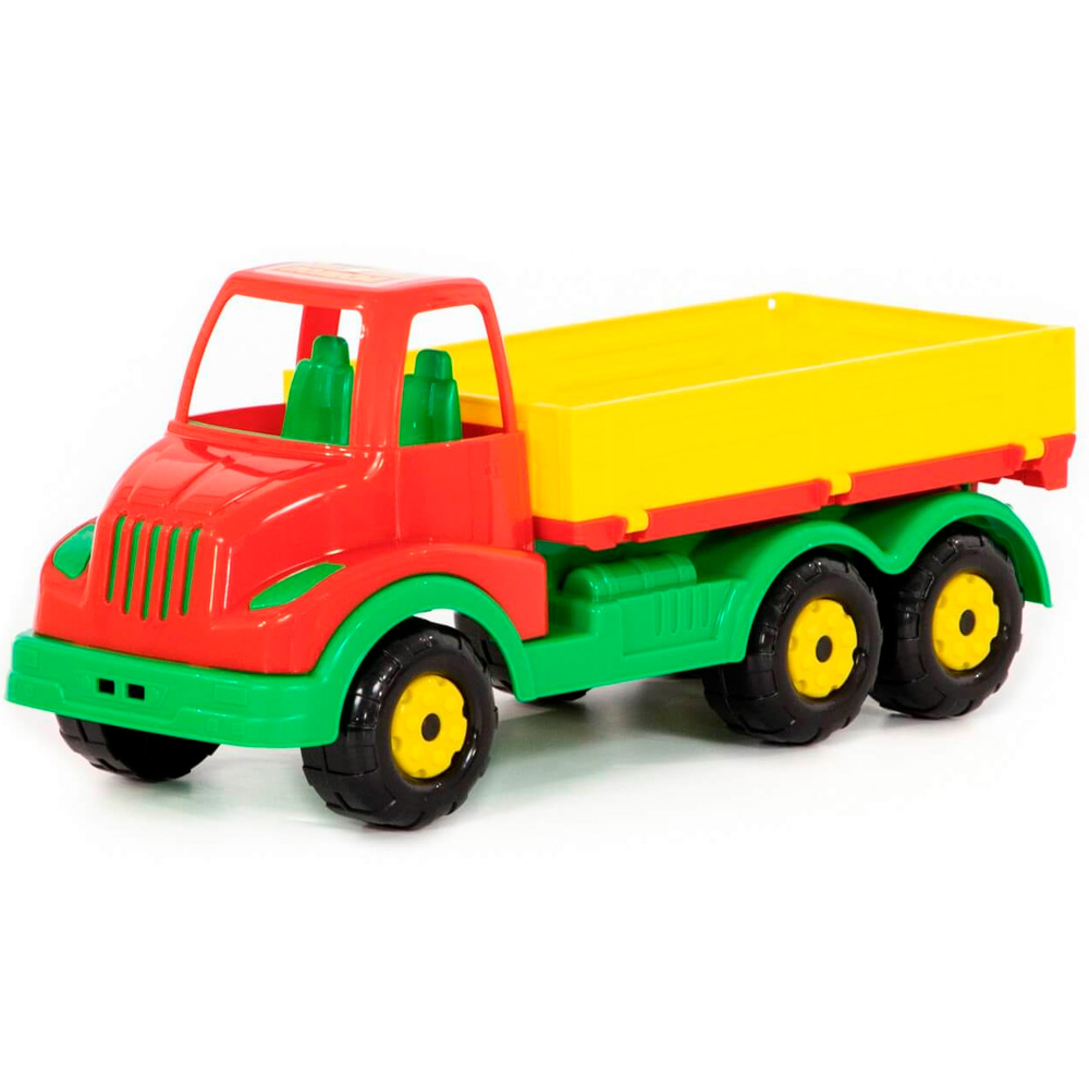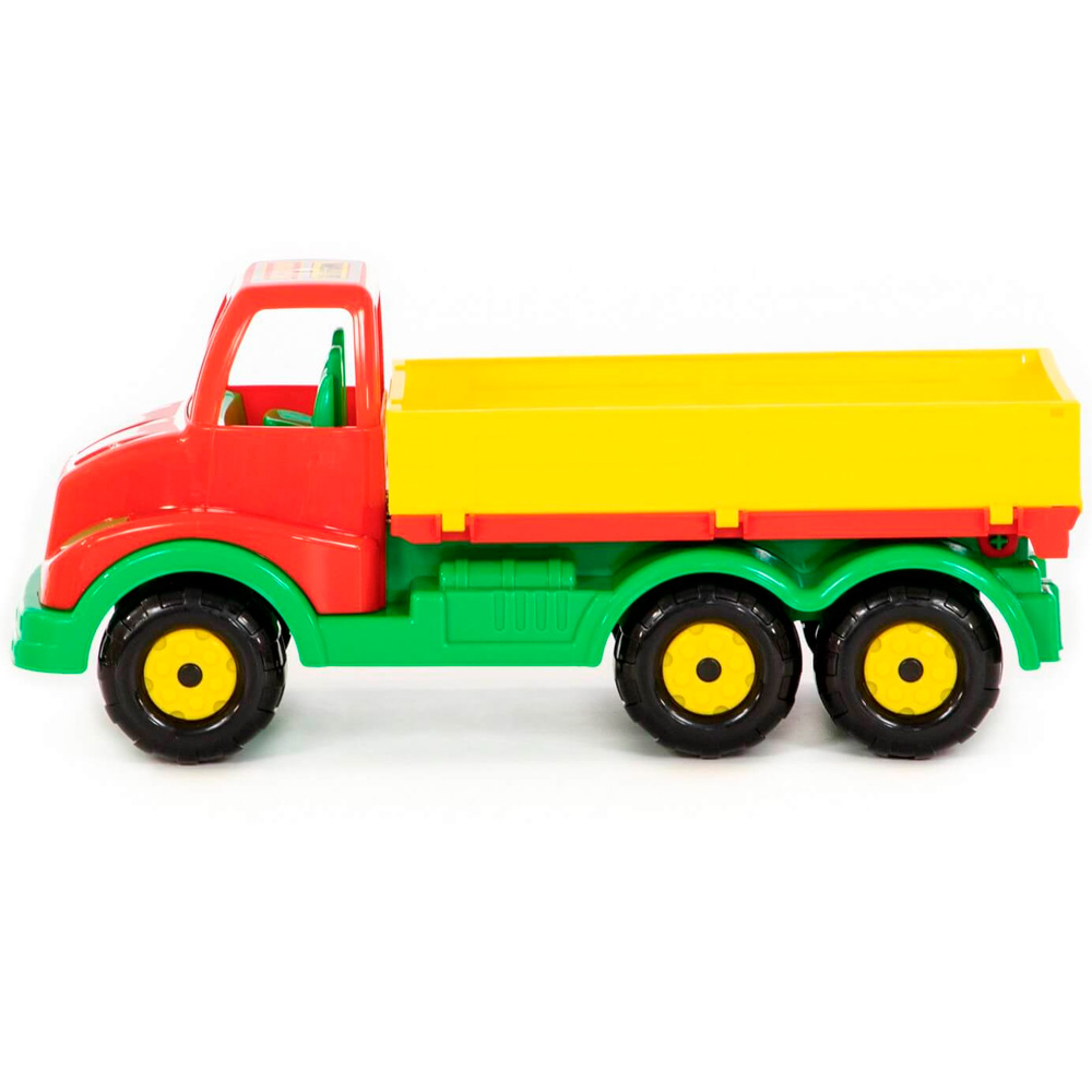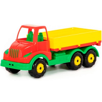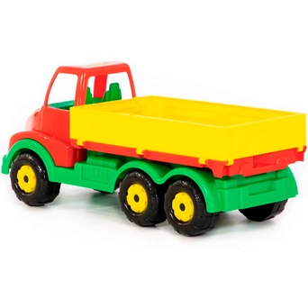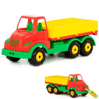 • Яркая модель представляет собой копию грузовика с вместительным кузовом.