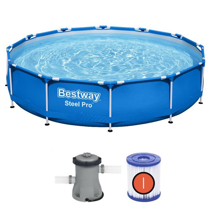 Сначала давайте вспомним, что же такое каркасный бассейн. Это надувная чаша из прочного ПВХ (это как супервыносливая ткань, которая не боится воды и солнца), которую держит на себе крепкий металлический каркас. Его легко собрать: всего за 30–60 минут, даже без папиных суперсил! Разобрать — еще проще, и зимой он хранится в коробке, как большая игрушка.