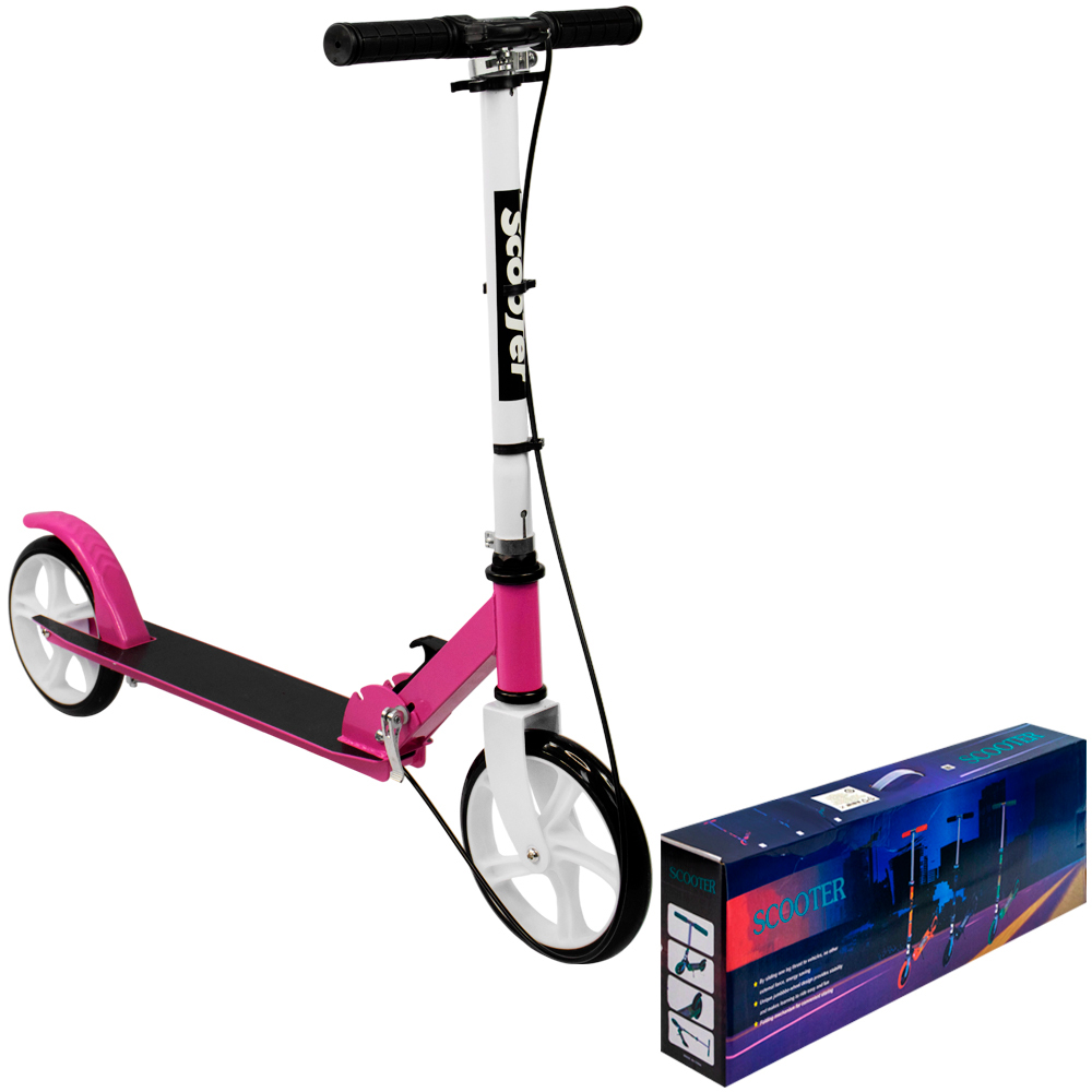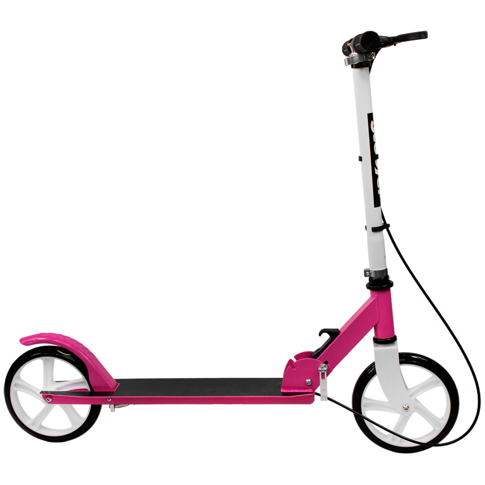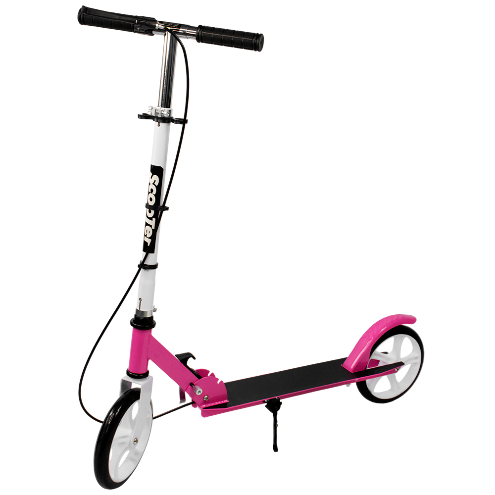 - Особенности: складная конструкция, регулируемая высота руля, колёса из полиуретана, передний ручной тормоз