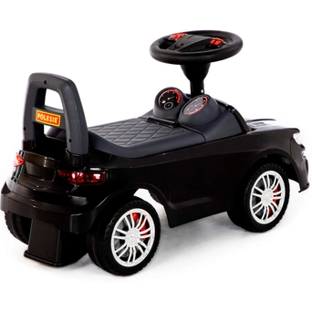 Каталка-машинка представляет собой пластиковый толокар в виде яркого джипа с прочным основанием и рулевым управлением. Оснащена музыкальным модулем. Она проста и удобна в управлении: необходимо поворачивать руль и отталкиваться ногами. Прочная пластиковая рама имеет небольшой вес, а широкие колеса гарантируют устойчивость. Такая каталка способствует развитию опорно двигательного аппарата ребенка, укреплению суставов и координации в пространстве. Катание на таком толокаре для ребенка будет одновременно увлекательным и абсолютно безопасным. Четыре широких колеса из пластика делают машину устойчивой к опрокидыванию, спереди и сзади есть защита от попадания предметов под не